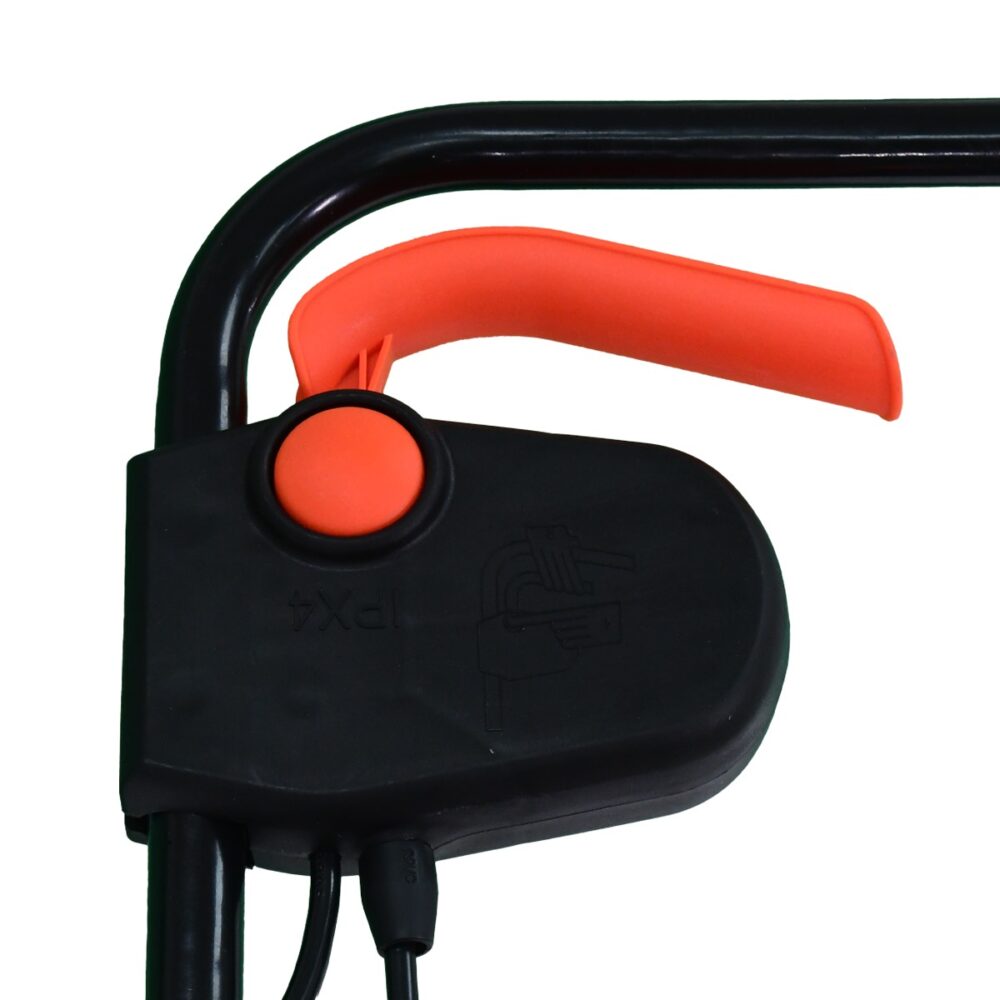 - הפעלה דו שלבית – מכסחת הינה כלי השומר על בטיחות המשתמש, כך שאת הפעלתו יש לעשות בעזרת לחיצה על ידית ההפעלה ולחיצה על משבת הבטיחות בו זמנית למניעת הפעלה לא רצויה.