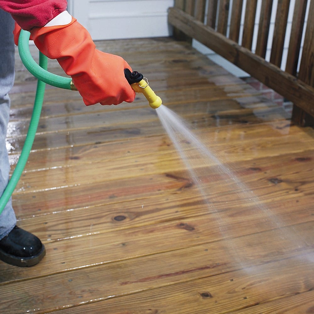רסס או מרח בנדיבות את המנקה עץ וקרצף קלות להחדרת החומר לפני השטח. (קצף קל אמור להופיע. אם לא, יישם חומר נוסף) שטוף בהרבה מים ואפשר ייבוש. ייתכן ותופיעה הצהבה קלה על פני השטח, אך זאת תעלם תוך מספר ימים.