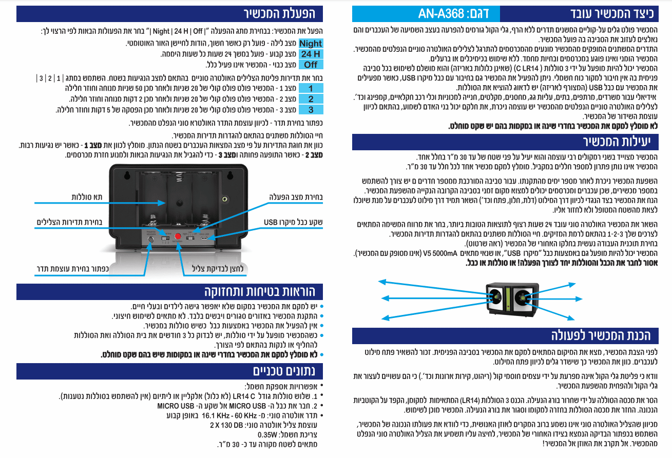- מכשיר נייד מופעל סוללות להרחקת מכרסמים