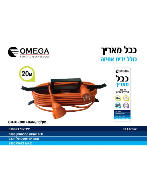כבל מאריך 20 מטר כולל מתקן נשיאה